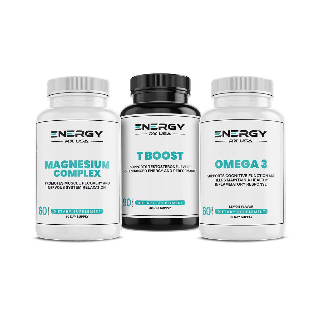 Achieve peak performance with the Testosterone Support Stack, crafted to enhance your strength and endurance. Featuring T Boost to drive testosterone levels, Magnesium Complex for fast muscle recovery and stronger bones, and Omega-3 for supporting heart health and cognitive clarity, this powerful combination fuels energy and boosts overall performance. Perfect for those focused on reaching their highest potential, this stack keeps you ready to dominate every challenge.